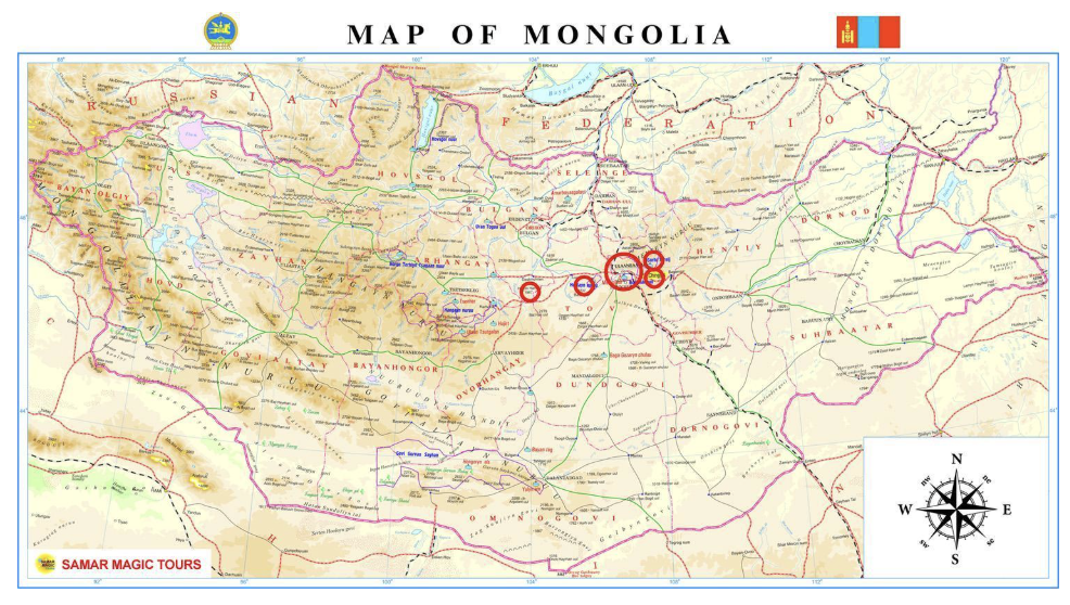 Day 11: Hotel check-out in Ulaanbaatar is at 12:00PM. Meeting with the Samar Magic Tours team at the hotel reception. Transfer to the new “Genghis” Khan Airport (52 km / 32.3 miles, 4-5 hours of travel, depending on traffic in Ulaanbaatar). Departure from Mongolia. END OF THE TOUR. (B)