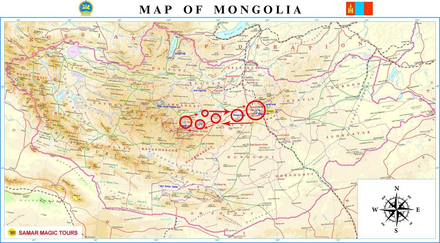 Day 12: Rooms must be vacated before 12:00 noon on the day of departure. Meeting with the Samar Magic Tours team at the hotel reception. Transfer to the New “Genghis” Khan Airport (52 km/32.3 miles, 4-5 hours). Departure from Mongolia. (B)