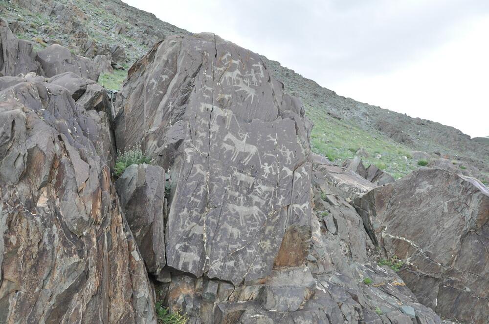 Los numerosos grabados rupestres y monumentos funerarios en el Altái Mongol: encontrados en estos tres sitios ilustran el desarrollo de la cultura en Mongolia durante un período de 12.000 años. Las primeras imágenes reflejan una época (11.000 – 6.000 aC) cuando el área estaba parcialmente cubierta de bosques y el valle proporcionaba un hábitat para los cazadores de caza mayor. Imágenes posteriores muestran la transición al pastoreo como la forma de vida dominante. Las imágenes más recientes muestran la transición a un estilo de vida nómada dependiente de los caballos durante el primer milenio antes de Cristo, el período escita y el período turco posterior (siglos VII y VIII d. C.). Las tallas contribuyen valiosamente a nuestra comprensión de las comunidades prehistóricas del norte de Asia.